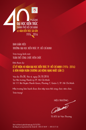 Mời dự Lễ kỷ niệm 40 năm ĐH Kiến trúc TP.Hồ Chí Minh và Lễ đón nhận Huân chương Lao động hạng Nhất (Lần 2)