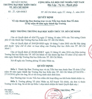 Quyết định thành lập Ban thường trực và các Tiểu ban thuộc Ban Tổ chức Lễ kỷ niệm 40 ngày thành lập Trường