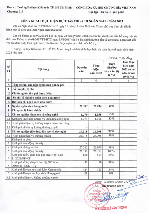 Trường Đại học Kiến trúc TP. Hồ Chí Minh công khai thực hiện dự toán thu-chi ngân sách năm 2024