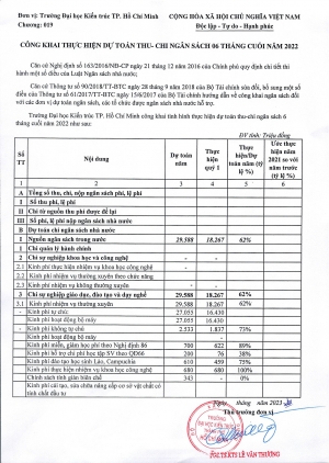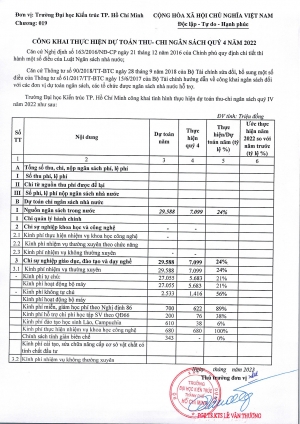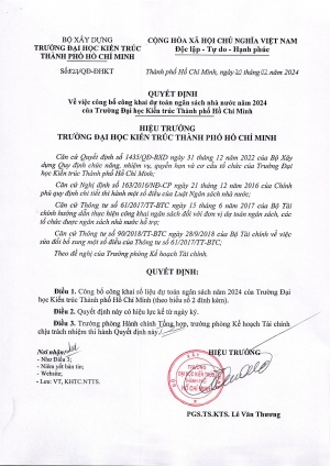 Quyết định số 127/QĐ-ĐHKT ngày 20/02/2024 về việc công bố công khai dự toán ngân sách năm 2024 của Trường Đại học Kiến trúc Thành phố Hồ Chí Minh