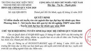 Hội đồng tuyển sinh Trường Đại học Kiến trúc Thành phố Hồ Chí Minh thông báo thông tin về điều kiện xét tuyển theo Phương thức 3 - Xét điểm tốt nghiệp THPT năm 2020 - Tuyển sinh đại học hệ chính quy vào các ngành tại các cơ sở đào tạo của Trường như sau: