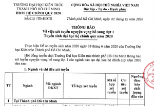 Thông báo về điểm chuẩn xét tuyển nguyện vọng bổ sung đợt 1-TS CQ năm 2020