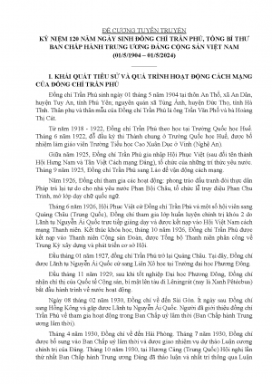 ĐỀ CƯƠNG TUYÊN TRUYỀN KỶ NIỆM 120 NĂM NGÀY SINH ĐỒNG CHÍ TRẦN PHÚ, TỔNG BÍ THƯ BAN CHẤP HÀNH TRUNG ƯƠNG ĐẢNG CỘNG SẢN VIỆT NAM (01/5/1904 – 01/5/2024)