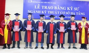 Khoa Kỹ thuật đô thị (Đại học Kiến trúc TP.Hồ Chí Minh) long trọng tổ chức Lễ trao bằng kỹ sư ngành Kỹ thuật cơ sở hạ tầng cho 45 tân cử nhân sáng ngày 22/1/2016.