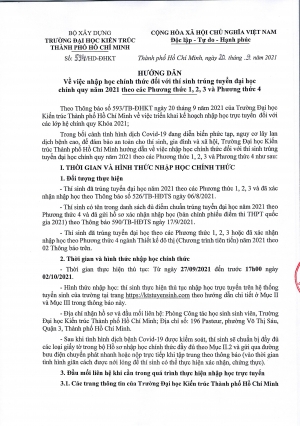 Hướng dẫn 594/HD-ĐHKT ngày 20/9/2021 về việc hướng dẫn nhập học chính thức đối với thí sinh trúng tuyển đại học chính quy năm 2021 theo các Phương thức 1, 2, 3 và Phương thức 4 -