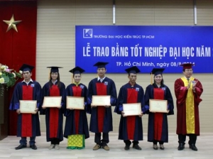 Sáng 17/1, Đại học Kiến trúc TP.Hồ Chí Minh đã tổ chức Lễ trao bằng tốt nghiệp cho 107 sinh viên hệ Vừa làm vừa học của các ngành Kiến trúc, Xây dựng, Đồ họa, Thiết kế nội thất.