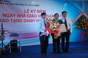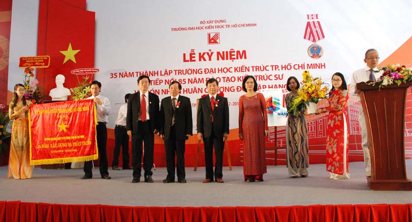 Trường ĐH Kiến trúc đón mừng cờ luân lưu của UBND TPHCM trao tặng nhân dịp Kỉ Niệm 35 Năm Thành Lập Trường