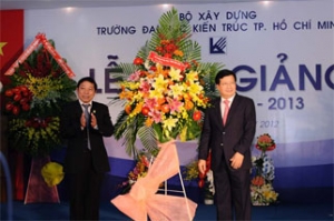 Lãnh đạo Bộ Xây dựng, Bộ trưởng Trịnh Đình Dũng và Thứ trưởng Nguyễn Thanh Nghị tới dự Lễ Khai Giảng năm học 2012-2013 ĐH Kiến trúc TPHCM