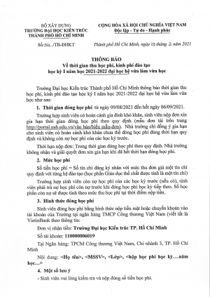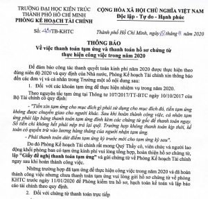 Thông báo số 26/TB-KHTC ngày 31/12/2021 của Phòng Kế hoạch Tài chính - Trường Đại học Kiến trúc Thành phố Hồ Chí Minh về việc quyết toán thuế thu nhập cá nhân năm 2021