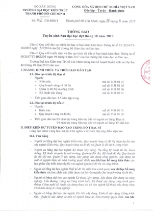 Hội đồng tuyển sinh Sau Đại học - trường Đại học Kiến trúc TP. Hồ Chí Minh thông báo danh sách thí sinh dự tuyển sinh Sau Đại học đợt tháng 10 năm 2019.