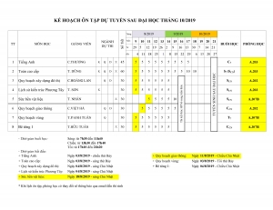 Kế hoạch ôn tập dự tuyển Sau đại học đợt tháng 10 năm 2019 - Cập nhật ngày 2/8/2019.