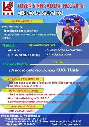 Trường Đại học Kiến trúc TP. Hồ Chí Minh thông báo kế hoạch tuyển sinh Sau đại học đợt tháng 10 năm 2018.