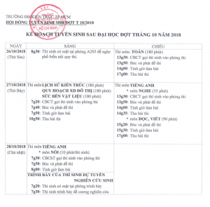 Hội đồng Tuyển sinh Sau đại học đợt tháng 10 năm 2018 - Trường Đại học Kiến trúc TP. Hồ Chí Minh công bố lịch thi tuyển sinh.