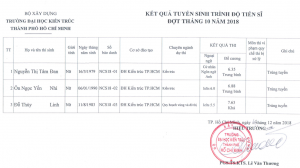 Hội đồng tuyển sinh Sau đại học trường Đại học Kiến trúc TP.Hồ Chí Minh thông báo kết quả tuyển sinh Thạc sĩ đợt tháng 10 năm 2017 như sau: