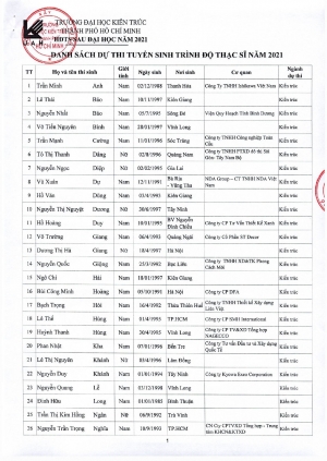 Danh sách thí sinh dự thi trình độ thạc sĩ năm 2021