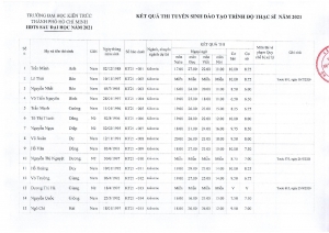 Kết quả trúng tuyển tuyển sinh trình độ Thạc sĩ đợt tháng 10 năm 2021 -