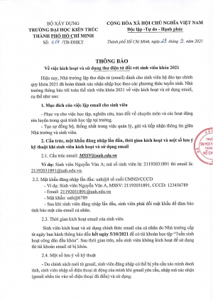 Thông báo số 614/TB-ĐHKT ngày 29/9/2021 về việc kích hoạt và sử dụng thư điện tử đối với sinh viên khoá 2021