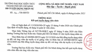 Theo yêu cầu nâng cao chất lượng đội ngũ giảng viên, Trường Đại học Kiến trúc Thành phố Hồ Chí Minh thông báo nhu cầu bổ nhiệm chức danh giáo sư, phó giáo sư năm 2021 như sau: