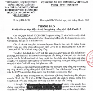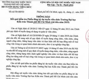Trường Đại học Kiến trúc Thành phố Hồ Chí Minh thông báo danh sách thí sinh đã nộp hồ sơ xét tuyển vào các chương trình liên kết quốc tế và vượt qua yêu cầu tiếng Anh đầu vào để nhập học chương trình.