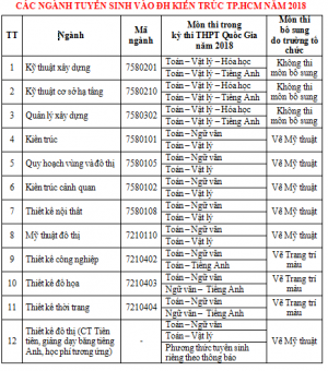 ĐỀ ÁN TUYỂN SINH HỆ CHÍNH QUY NĂM 2018 VÀO ĐH KIẾN TRÚC TP.HCM
