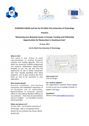 Mời tham dự Hội thảo “Thúc đẩy sự nghiệp nghiên cứu tại Châu Âu: Cơ hội giành học bổng và hỗ trợ chi phí dnh cho nghiên cứu sinh tại Đông Nam Á”