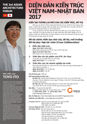 Buổi báo cáo chuyên đề "Tự nhiên và Kiến trúc" của KTS Toyo Ito (một trong những KTS hàng đầu của Nhật Bản trong lĩnh vực thiết kế Kiến trúc) sẽ diễn ra vào ngày 21/02 tại Đại học Kiên trúc TP.Hồ Chí Minh.