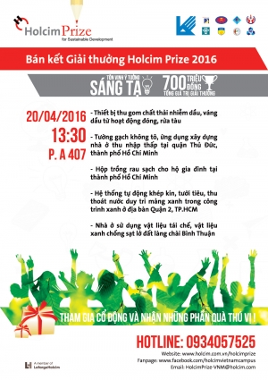 Mời tham dự buổi bảo vệ vòng Bán kết “Holcim Prize 2016”