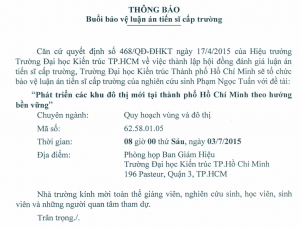 Vòng chung kết cuộc thi thiết kế công nghệ kiến trúc BIM sẽ diễn ra vào lúc 8 giờ 30 phút ngày 19/06/2015 tại hội trường A106, trường Đại học Kiến Trúc TP.Hồ Chí Minh