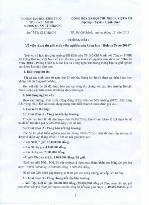 Ban Giám hiệu Trường Đại học Kiến trúc TP. Hồ Chí Minh trân trọng kính mời Quý thầy giáo, cô giáo đã từng hướng dẫn sinh viên Trường đạt Giải thưởng Loa Thành từ năm 1988 đến năm 2013; Các em sinh viên, cựu sinh viên Trường đã đạt các Giải thưởng Loa Thành từ năm 1988 đến năm 2013. Về tham dự Lễ kỷ niệm Ngày Nhà giáo Việt Nam 20/11 và Triển lãm 25 năm (1988-2013) Trường Đại học Kiến trúc TP. Hồ Chí Minh đạt Giải thưởng Loa Thành.