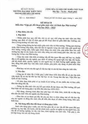 Kế hoạch số 306/KH-ĐHKT ngày 09/5/2022 về Diễn đàn "Gặp gỡ, đối thoại giữa sinh viên với lãnh đạo Nhà trường" năm học 2021 - 2022