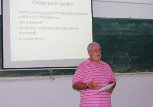 Báo cáo chuyên đề “Sự tham gia trong quy hoạch” và “Những vấn đề về quy hoạch đô thị hiện nay tại Hoa Kỳ" do Tiến sĩ Roger Caves (Đại học San Diego State - Hoa Kỳ) chủ trì diễn ra tại Đại học Kiến trúc TP.HCM ngày 9/10.