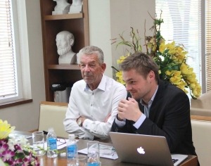 TP.HCM – Ngày 26/9/2013, ông Niels Horsted – Hiệu trưởng trường Đại học Bắc Đan Mạch (UCN) cùng ông Rene Martin Larsen – Đại diện đồng thời là điều phối viên hoạt động của UCN tại Việt Nam đã có buổi thăm và làm việc tại trường Đại học Kiến trúc TP.HCM. Tham dự buổi làm việc, về phía Nhà trường vinh dự có sự hiện diện của PGS.TS Phạm Tứ - Hiệu trưởng Nhà trường, TS. Lê Văn Thương - Phó hiệu trưởng Nhà trường, ông Vũ Việt Anh – Phó Trưởng Phòng Quản lý đào tạo SĐH&HTQT; và bộ phận Hợp tác Quốc tế.