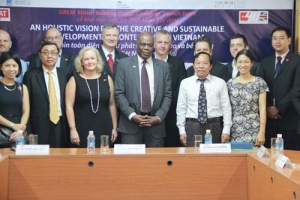 TP.HCM – Sáng ngày 28/8/2013, tại trường Đại học Kiến trúc TP.HCM, Nhà trường phối hợp cùng Tổng lãnh sự quán Vương quốc Anh tại TP. HCM, Ban Quản lý đầu tư và Xây dựng Thủ Thiêm đã long trọng tổ chức buổi lễ phát động cuộc thi thiết kế và xây dựng dành cho sinh viên nhân tuần lễ Vương quốc Anh tại TP. HCM, đồng thời là hoạt động chào mừng kỷ niệm 40 năm quan hệ ngoại giao Viêt-Anh.