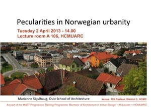 Ngày 02/04/2013, vào lúc 14h00, tại Hội trường A106 trường Đại học Kiến trúc Tp.HCM, Trung tâm đào tạo Quốc tế đã tổ chức Báo cáo chuyên đề cho các sinh viên thuộc Chương trình đào tạo tiên tiến ngành Thiết kế Đô thị của Trường ĐH Kiến trúc TPHCM liên kết với Trường Đại học Katholike Leuven – Vương Quốc Bỉ. Đây là chuyên đề học thuật thường kỳ bên cạnh chương trình đào tạo chuẩn.