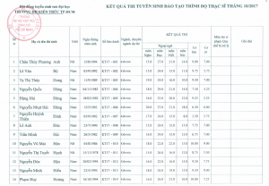 Kết quả tuyển sinh Thạc sĩ đợt tháng 10/2017