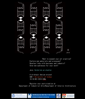 Workshop về Sáng tạo công nghiệp nằm trong khuôn khổ dự án “The Factory as Studio” sẽ diễn ra tại Đại học Kiến trúc TP.Hồ Chí Minh từ ngày 10/12/2-16 đến hết ngày 17/12/2016.