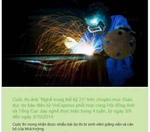Cuộc thi ảnh “Nghề trong thế kỷ 21” do Hội Đồng Anh phối hợp với Tổng Cục dạy nghề thực hiện từ ngày 3/9 đến ngày 3/10/2014.