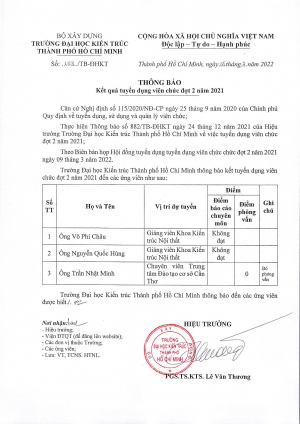 Thông báo số 158/TB-ĐHKT ngày 16/03/2022 về Kết quả tuyển dụng viên chức đợt 2 năm 2021