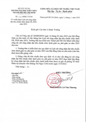 Công văn số 140/ĐHKT-TCNS ngày 02/3/2023 về việc triển khai Lịch xét công nhận đạt tiêu chuẩn chức danh GS, PGS năm 2023