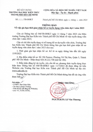 Thông báo số 707/TB-ĐHKT ngày 30/8/2023 về việc gia hạn thời gian nhận hồ sơ tuyển dụng viên chức đợt 1 năm 2023