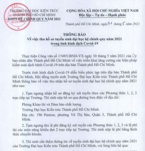 Thông báo số 2 về việc xác nhận nhập học theo Phương thức 1, 2, 3 kỳ Tuyển sinh đại học hệ chính quy năm 2021