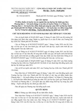 QUYẾT ĐỊNH về điểm chuẩn xét tuyển vào các ngành đào tạo đại học hệ chính quy theo phương thức 1, 2, 3 năm 2021