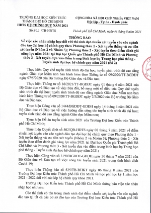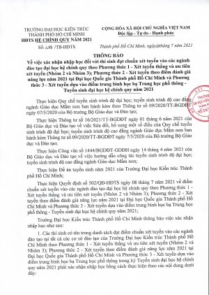 Quyết định về điểm chuẩn xét tuyển vào các ngành đào tạo đại học hệ chính quy theo phương thức 1, 2, 3 năm 2021