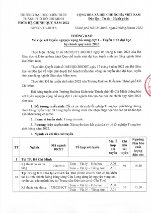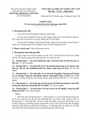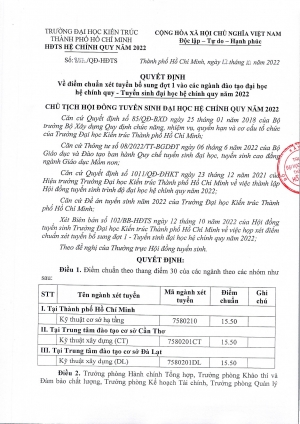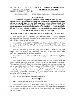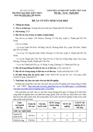 ĐỀ ÁN TUYỂN SINH NĂM 2022 CỦA TRƯỜNG ĐẠI HỌC KIẾN TRÚC THÀNH PHỐ HỒ CHÍ MINH