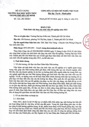 Báo cáo số 1285/BC-ĐHKT ngày 29/12/2023 của Trường Đại học Kiến trúc Thành phố Hồ Chí Minh về tình hình việc làm của sinh viên tốt nghiệp năm 2023