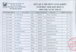 Kết quả thi môn năng khiếu kỳ thi Tuyển sinh Đại học hệ Vừa làm vừa học năm 2018 - 2019 (Đợt 2)