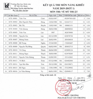 Hội đồng Tuyển sinh Đại học hệ Vừa làm vừa học Trường Đại học Kiến trúc TP. Hồ Chí Minh công bố kết quả thi môn năng khiếu (vẽ mỹ thuật) - Đợt 1 năm 2019.