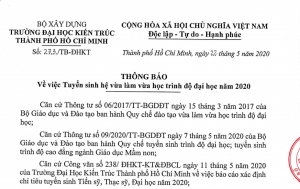 Trường Đại học Kiến trúc Thành phố Hồ Chí Minh thông báo tuyển sinh đại học vừa làm vừa học trình độ đại học năm 2019.